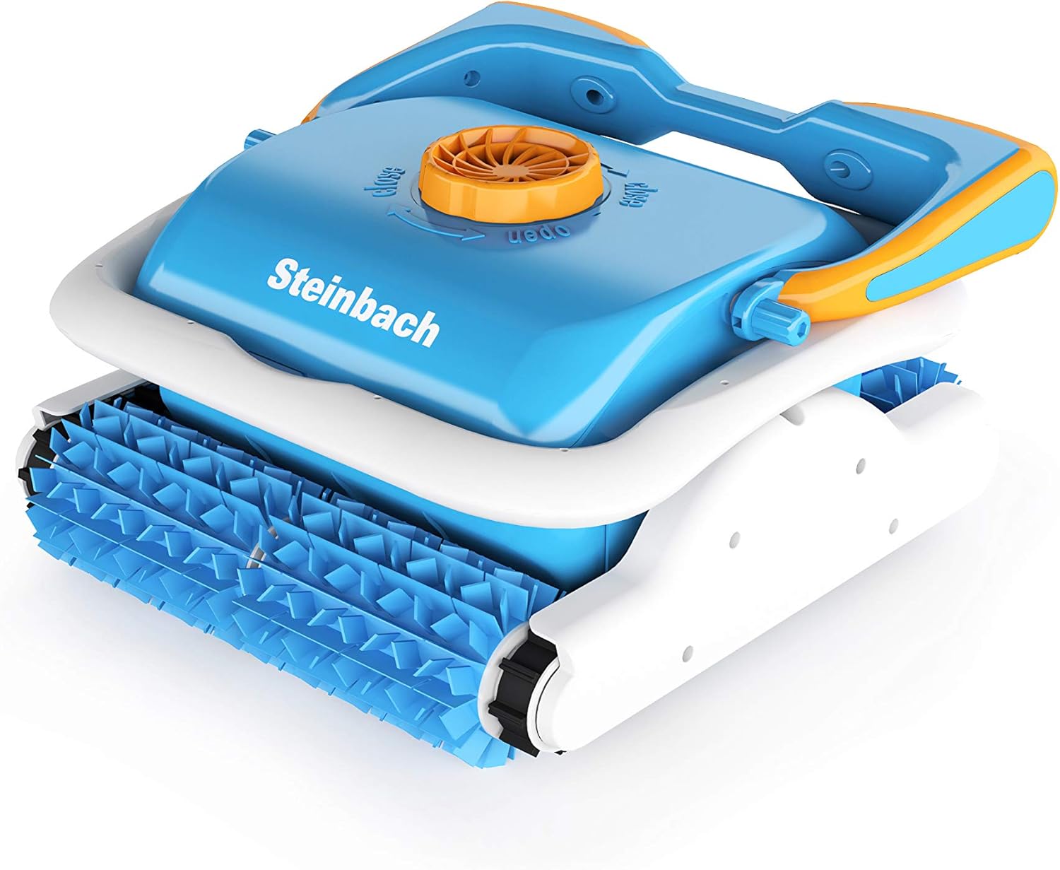 Met de Steinbach Twin zwembadreiniger beschikt u over een volautomatische reiniger voor een optimale vloer- en wandreiniging van uw zwembad. Speciale kunststof borstels reinigen zowel vloer als muur. Met de geïntegreerde filtereenheid, gecombineerd met een 20 V, 20.000 l/u sterke krachtige pomp, is aansluiting op een extern filtersysteem niet nodig. De bediening gebeurt volledig automatisch. De met de bodemzuiger en regeleenheid verbonden kabel beschikt over een lengte van ca. 18 m. Hiermee is een probleemloze reiniging voor zwembadmaten tot 6 x 12 m mogelijk. Let op: Niet geschikt voor overloop, roestvrij staal, tegels.